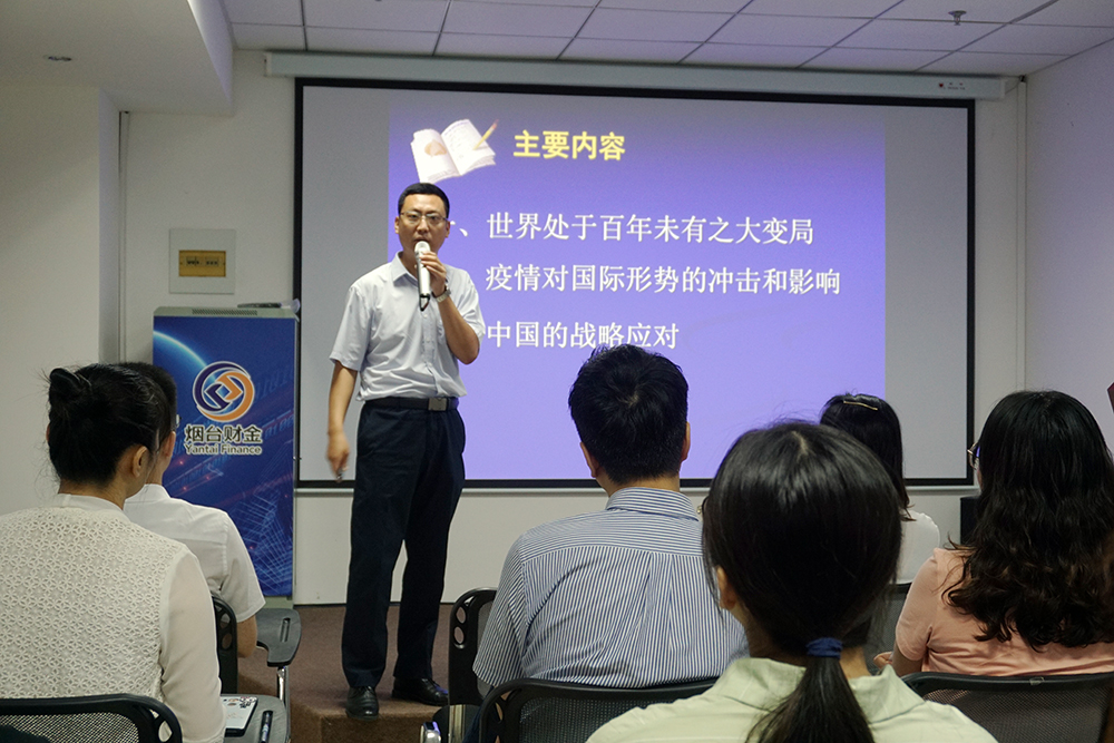 為助力集團干部職工拓展視野,增長知識,進一步認清當前國內國際形勢,擔當使命,自覺應對風險挑戰(zhàn),7月23日上午,集團舉辦了第三期“財金大講堂”,開展國情黨情和形勢政策教育,邀請到中共煙臺市委黨校哲學教研室副主任、副教授劉中興帶來《當前國際形勢——疫情沖擊與戰(zhàn)略應對》專題講座。