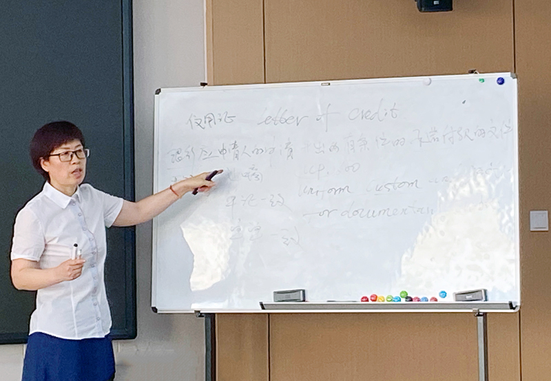 隨后,主講人對融資市場及主要融資品種進(jìn)行講解,詳細(xì)區(qū)分解析了公司債券、企業(yè)債券、債務(wù)融資工具,并著重以集團(tuán)投資企業(yè)——煙臺新能智慧產(chǎn)業(yè)園為例,講解了國際貿(mào)易結(jié)算工具信用證的使用和融資實務(wù),為便于理解,她在現(xiàn)場繪制了信用證業(yè)務(wù)流程圖。講授中,主講人不斷拋出問題,設(shè)置了有獎問答環(huán)節(jié),大家一直緊緊跟隨著她的節(jié)奏,認(rèn)真聆聽,主動思考,深入探討交流。